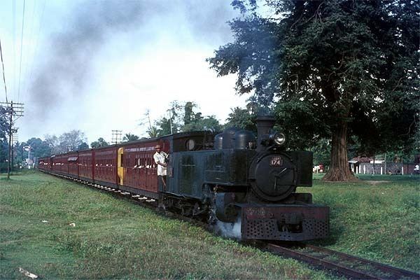 Way back in 1976, the Homagama railway station of Ceylon Government Railways. The class J1 steam locomotive #221 on narrow gauge rail road